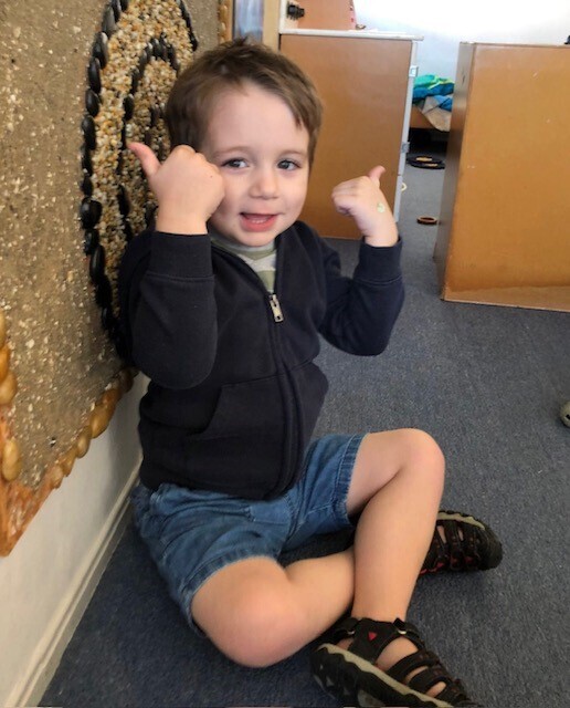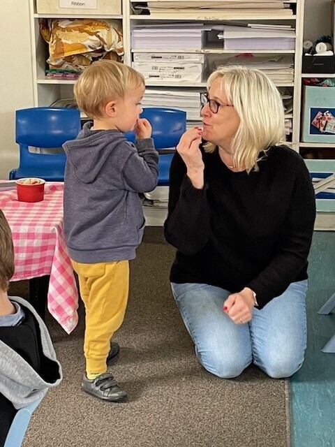 We use sign language in our karakia before meal times every day. We have been learning to communicate using NZSL through songs, learning animal names, colours, numbers and basic greetings and phrases.