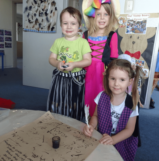 Some children dressed up as the first Rangatira (chief) and the European Settlers.