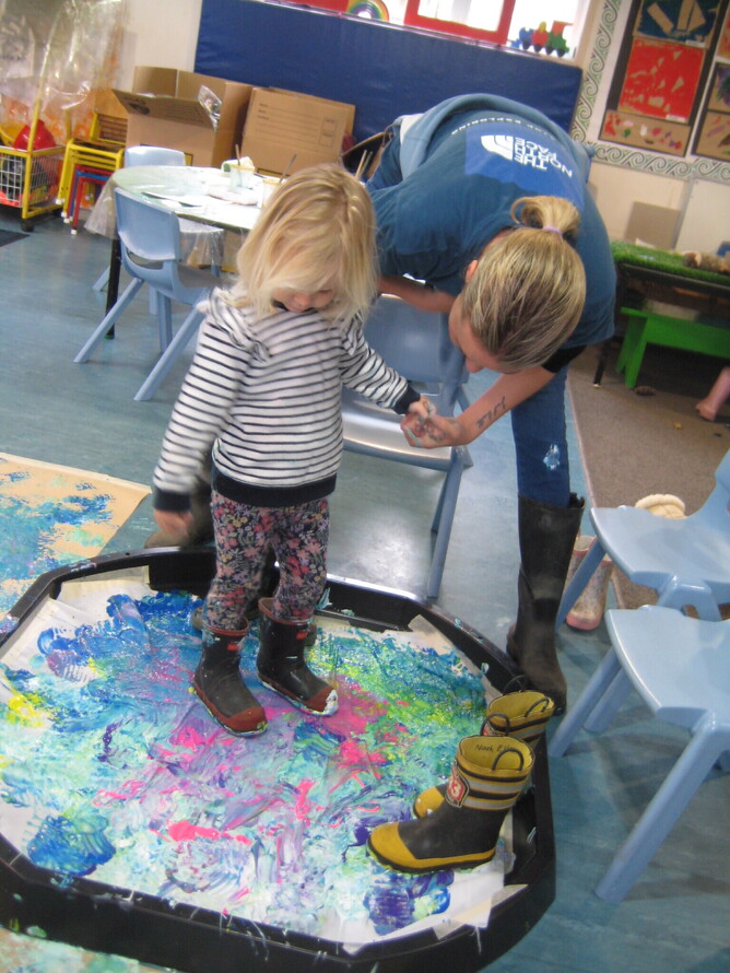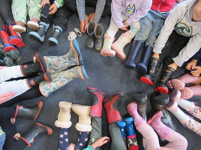 We came dressed in our gumboots and had lots of fun with gumboot throwing games, gumboot songs and stories and creating painted gumboot footprints.