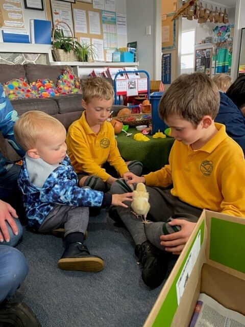 Every day the chicks grew a little bit bigger and stronger. Some big brothers and sisters came before and after school to visit the chicks too, everyone loved watching and holding them.